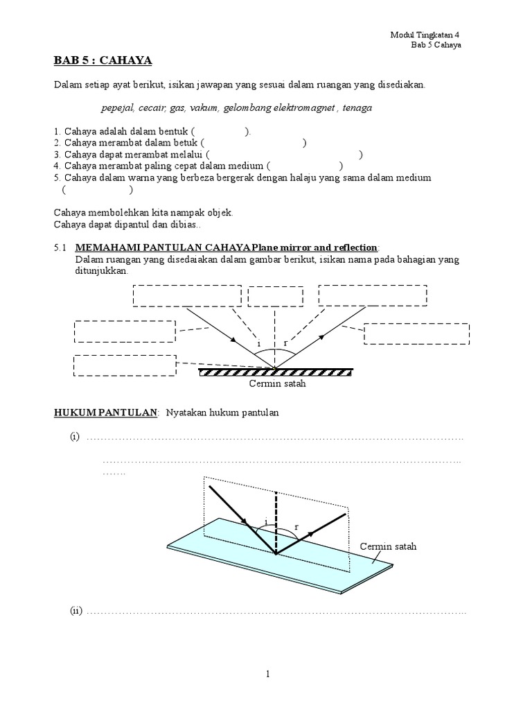 Bab 5 Cahaya Fizik Tingkatan 4 Pdf